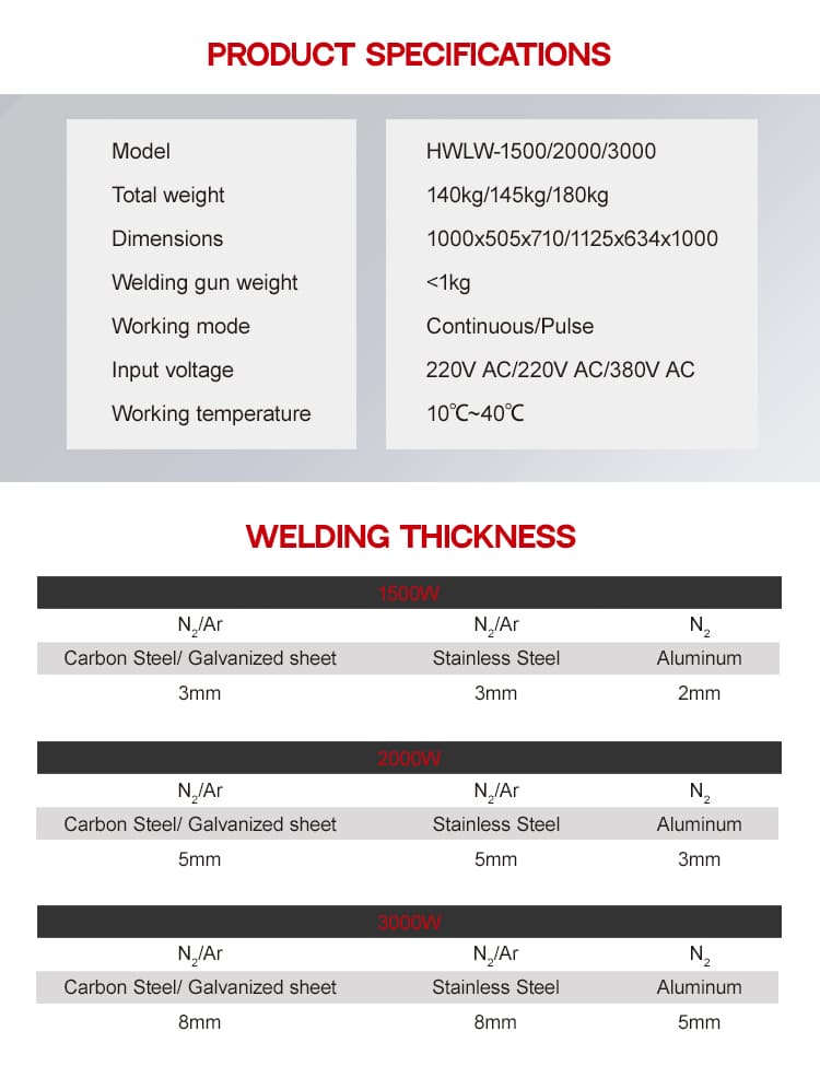 1) Medžiagos ir suvirinimo storis: kad atitiktų jums tinkamą lazerio generatoriaus galią.