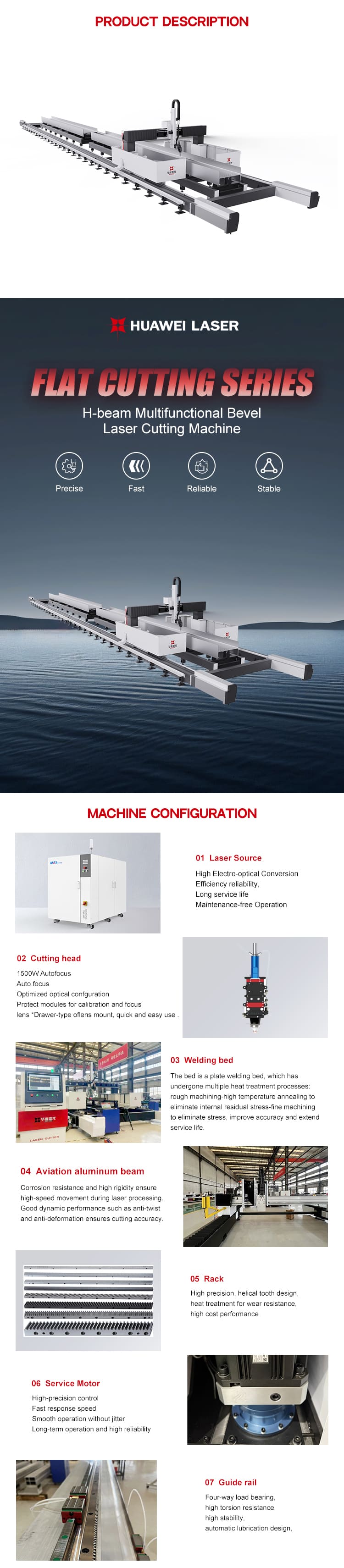 HUAWEI LASER pristato 3D CNC H-spindulių lazerinio pjovimo stakles 12000W, skirtą metalo plieno apdirbimui, tiekiančią itin didelę galią konstrukciniam plienui, sijomis ir sunkiems gaminiams. Remdamiesi pažangiais moksliniais tyrimais ir plėtra, didelio masto gamyba ir patikimomis atsargomis, mes teikiame tiesiogines gamyklos kainas ir greitą masinį pristatymą.