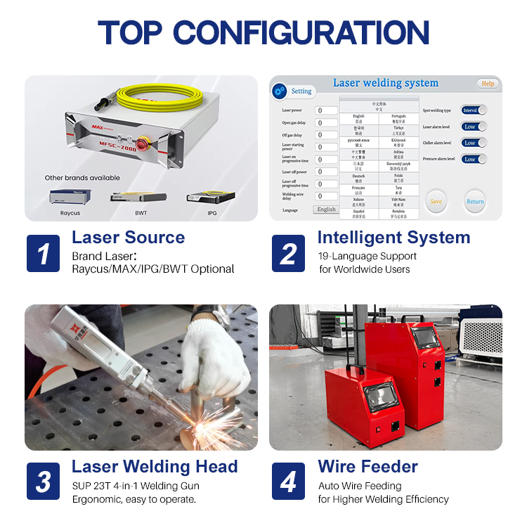 TheHUAWEI LAZERIS Clean-Result 1500W 2000W 3000W vandeniu aušinamas rankinis lazerinis suvirinimo aparatas, skirtas aukštos kokybės metalo apdailaiyra orientuotas į tikslumąRankinis lazerinis suvirinimo aparatasSukurtos taip, kad būtų lygios, švarios suvirinimo siūlės su minimaliu tolesniu apdorojimu. Jo pažangi vandeniu aušinama sistema užtikrina puikią šilumos kontrolę ir stabilų lazerio išvestį nuolatinio veikimo metu, sumažindama šilumos iškraipymą ir pagerindama paviršiaus kokybę. TheHUAWEI LAZERIS Clean-Result 1500W 2000W 3000W vandeniu aušinamas rankinis lazerinis suvirinimo aparatas, skirtas aukštos kokybės metalo apdailaiužtikrina gilų nerūdijančio plieno, anglinio plieno, aliuminio ir kitų metalų įsiskverbimą ir tvirtą suvirinimo vientisumą. Idealiai tinka pramoninei gamybai, smulkaus metalo apdailai ir profesionalioms remonto užduotims, ši mašina užtikrina patikimą veikimą, nuoseklius rezultatus ir išskirtinę suvirinimo estetiką aukštos kokybės taikymams.